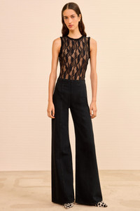 Elongating the form, the Bianca is a classic wide-leg design with center-front raised seams down each side and a Hollywood waistband that defines and flatters. It’s responsibly handmade from premium denim in a wear-forever black wash. - Non-stretch denim - Handcrafted in Los Angeles - Model Height: 5'10" - High-rise, wide leg - Back pockets - Inseam: 32 - Signature monogram leather patch and hand-hammered ring - Side-seam zipper - Composition: 100% cotton - Machine wash cold