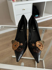 Avant Garde - Prada heels shoes black with flowers Italy vintage rare