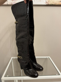 Casadei made in Italy leather crocodile style boots luxury