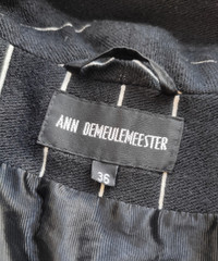 9/10 - worn twice. Excellent codition - check pics! RARE and UNIQUE sleveless belted fastened coat by Ann Demeulemeester Amazing cut, striped inside, magic cloth (check tag) Tag size 36 - runs XS Made in Italy RRP - 980$ Check my other listings!!!!!!