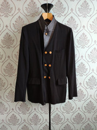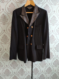 ARCHIVE ! AW2002 double breasted blazer with leather collar