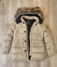 9/10. One try - mistake with size. As new - check detail pics Down parka by DUVETICA in nice beige color Detachable real fur hood, riri zips, warn, soft Tag size 48 - runs M Made in Croatia RRP - 1100$ Check my other listings!!!!