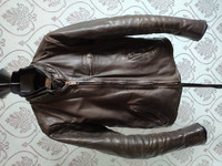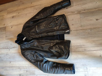 10/10 Archive handmade biker leather jacket by Golden Goose Venezia Heavyweight jacket with "Utility cloth" tag - looks like real biker jacket from 1940-50 with new lining. Comes with original insulated zip vest. Tag size S - runs XXS, ask msrmnts Made in Italy RRP - 1600$ Shoulders - 14 1/2 inch laid flat P to P - 18 inch Sleeve - 24 inch Back length w/o collar - 23 inch Check my other listings!