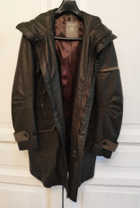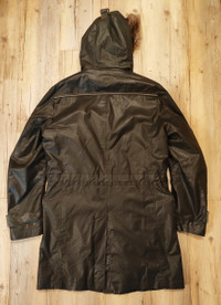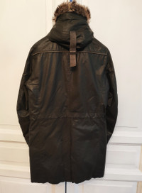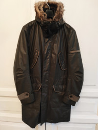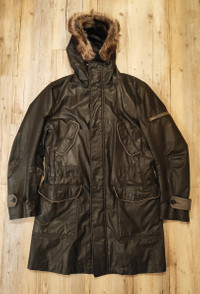 9/10 - worn three times with suit Olive waxed leather detail long parka from PREVIEW Milano. Tag size 48 - runs S - M Windproof, waterproof, 7 pockets, lightweight (check composition), removable faux fur removable trim, anatomical sleeves Made in Italy RRP - 560$ Check my other listings!!!
