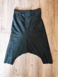 9/10 Worn twice. A bit bigger. Check pics! Amazing hanstitched Cerbere handmade drop crotch calfskin pants by Isaac Sellam Tag size 36 - runs 27 waist. Ask measurements! One front pocket, asymmetrical fit, deep green color Handmade in France RRP - 1100$ Check my other stuff!!!!