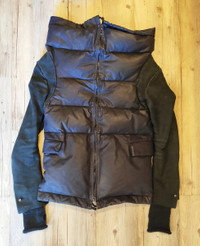 9/10. Worn twice. Excellent condition - check pics. Handmade high neck down coat by Isaac Sellam FW11 Warm, soft, excellent! Two types of leather, wool gloved, amazing cut, riri zips. Tag size 40 - runs XXS-XS Handmade in France RRP - 2160$ Check my other listings!!!!
