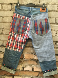 Patchwork denim cropped jeans.Like Yohji Yamamoto