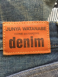10/10 (mistake with size) Junya Watanabe DENIM patchwork line cropped jeans Mainline (not Levi’s - check pics) Tag size S - app 29 (ask detail pics and mstmnts) Waist laid flat - 16 inch Inseam - 22 inch Outseam - 32 1/2 inch Leg opening - 8 inch Made in Japan RRP - 1120$ Check my other listings!