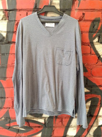 9/10 Great Maison Martin Margiela blue stripped v-neck longsleeve Tag size 52 - fits 50 Made in Italy RRP - 290EUR See my other Items!