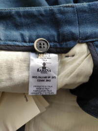 New with tags Chino pants by BARENA VENEZIA Excellent piece in nice colour. Too small for me. Tag size - 48, runs smaller - to 46. Waist - 16 1/2 inch laid flat Inseam - 31 inch Full length - 40 inch Leg opening - 7 1/2 inch Handmade in Italy RRP - 700$ Check my other listings!!!!!!!!!!!
