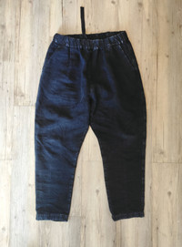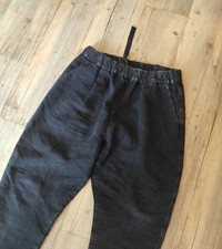 9/10. One photo session - check pics! Heavyweight linen pants in black from SS20 by CASEY CASEY Amazing cloth and relax 1920's fit Tag size L - runs from 30 to 35 waist (flexible). Waist - 17 inch laid flat Inseam - 27 inch Full length - 39 inch Leg opening - 7 1/2 inch Made in France RRP - 730$ Check my other listings!!!!