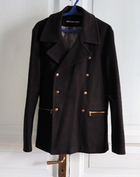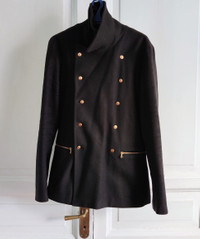 8/10. Worn a few. One dry clean - check pics! RARE navy coat from "Made in Moscow" by Denis Simachev Tag size 54 - runs 50 Unique gold USSR buttons & lining Made in Italy RRP - 1050$ Check my other listings!!!!!!!