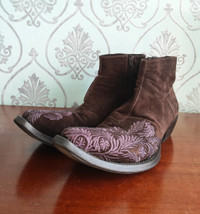 9/10 - excellent condition - check pics! UNIQUE mexican toe style super chic embroidered brown suded boots by Gianni Barbato Brand closed. Vintage and collectiong item. Tag size 42 1/2 - runs 42 1/2 - 43. Handmade in Italy RRP - 1500$ Check my other listings!!!