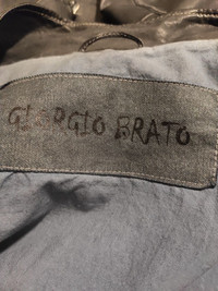 9/10 - excellent condition Blue washed leather biker jacket by Giorgio Brato Tag size 52 - runs 48-50. Shoulders - 18 inch laid flat P to P - 21 inch laid flat Sleeve - 26 1/2 inch Back length w/o collar - 26 inch 4 front pockets, 2 insude. RY zips, lightweight soft leathet. Handmade in Italy RRP - 1040$ Check my other listings!!!!!