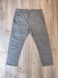 10/10 - one photo session. Absolutely like new - check inside pics! Amazing lightweight one piece linen trousers by Hannibal. Tag size 48 - runs TTS Waist - 17 inch laid flat Inseam - 25 inch Full length - 36 inch Leg opening - 7 inch Natural color, 4 pockets, diagonal seams - check detail pic! Made in Poland RRP - 420$ Check my other listings!!!