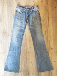 8/10 - worn a few. Amazing flared low waist washed denim jeans by Nobuhiko Satoh (If six was nine, L.G.B.) From Forbidden Fruit Tag size 27, runs TTS Waist - 15 1/2 inch laid flat Inseam - 35 inch Full length - 42 inch Leg opening - 11 inch Long and amazing! Made in Japan RRP - 680$ Check my other stuff!!!!