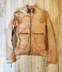 Condition 7/10 - worn a few. No stains - just used. Sold out everywhere. Brand closed. Rare and unique Brown mixed leather cafe racer jacket by Jan & Carlos Amazing fut, leather laces on sleeves & back, RIRI zips. Tag size 50 - runs S - M Shoulders - 18 1/2 inch laid flat P to P - 21 inch Sleeve - 26 1/2 inch Back length w/o collar - 28 1/2 Made in Italy RRP - 1100$ Check my other listings!!!!!