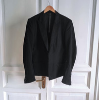 6/10. Worn. Thin cloth at the end of sleeves. A bit stains - nothing criminal - perfect used look & fit - check pics! Exclusive RARE hook short blazer by KKA Jcut sleeves, anatomical fit. Tag size 4 - runs 48-50 Shoulders - 18 inch laid flat P to P - 19 inch laid flat Sleeve - 26 inch Back length w/o collar - 26 inch Made in Japan RRP - 1100$ Check my other listings!!!!