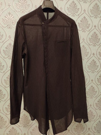 10/10 - excellent condition - check pics! Amazing long brown striped shirt by Lost&Found Ria Dunn Tags L - but runs M Made in Italy RRP - 690$ Shoulders - 19 inch laid flat P to P - 22 inch laid flat Sleeve - 29 inch Back length w/o collar - 36 inch Check my other items!