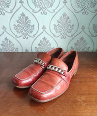 8/10. Great condition - check pics. Amazing retro style square jtoe chain loafers by MOMA Comes with box if you need Expressive color & massive metal chain Tag size 41 1/2 - runs TTS Handmade in Itlay RRP - 700$ Check my other listings!!!