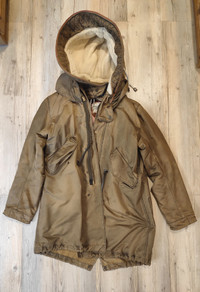 9/10. Worn a few. After professional dry clean. Unique brutal parka by GRUNGE JOHN ORCHESTRA FW12 Detachable lining, detachable wire super big hood, perfect zips. Waterproof & warm Tag size 50 - runs TTS Handmade in Moscow RRP - 1200$ Check my other listings!!