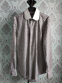 New w/o box. Amazing collar pin & bar plaid shirt by PHC Fantastic cloth! Tags - 41/16 - runs S-M Made in Italy RRP - 390$ Check my other listings!!!!