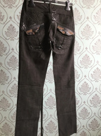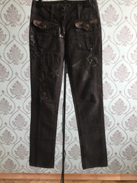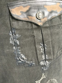 Absolutely new with tags! Handmade Embroided waxed jeans with silicone handmade prints and fired leather details by SHARE SPIRIT Rare and Unique!!!! Handmade metal buttons Tag size 36 - runs 26 Made in Japan RRP - 960$ Check my other stuff....