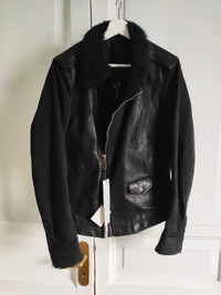 New with tags. Archive fur collar & nylon sleeves Stooges leather jacket by Rick Owens PLINTH FW13 Tag size - 50 - runs 46-48. S-M RRP - 1440$ Check my other listings!!!!!!!