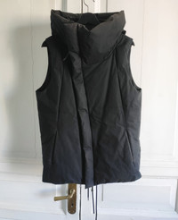 9/10. One photo session. Excellent condition, Unique assymetrical hooded down vest with front & backside pockets from 16AW by The Viridi-Anne Tag size 4 - runs from S to L P to P - 21 inch laid flat Back length w/o hood - 28 inch Wide hood, urethane coated, warm RRP - 890$ Made in Japan Check my other listings!!!!