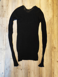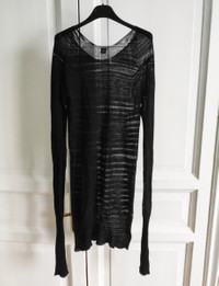 7/10. Worn a few, two dry clean. Amazing transparent long sweater by Yohji Yamamoto. White sleeve end, lightweight, wide neck, seamless. Runs S Shoulders - appr 16 inch laid flat (reglain collar) P to P - 17 inch laid flat Sleeve - 35 inch Back length - 33 inch Made in Italy RRP - 690$ Check my other listings!!!