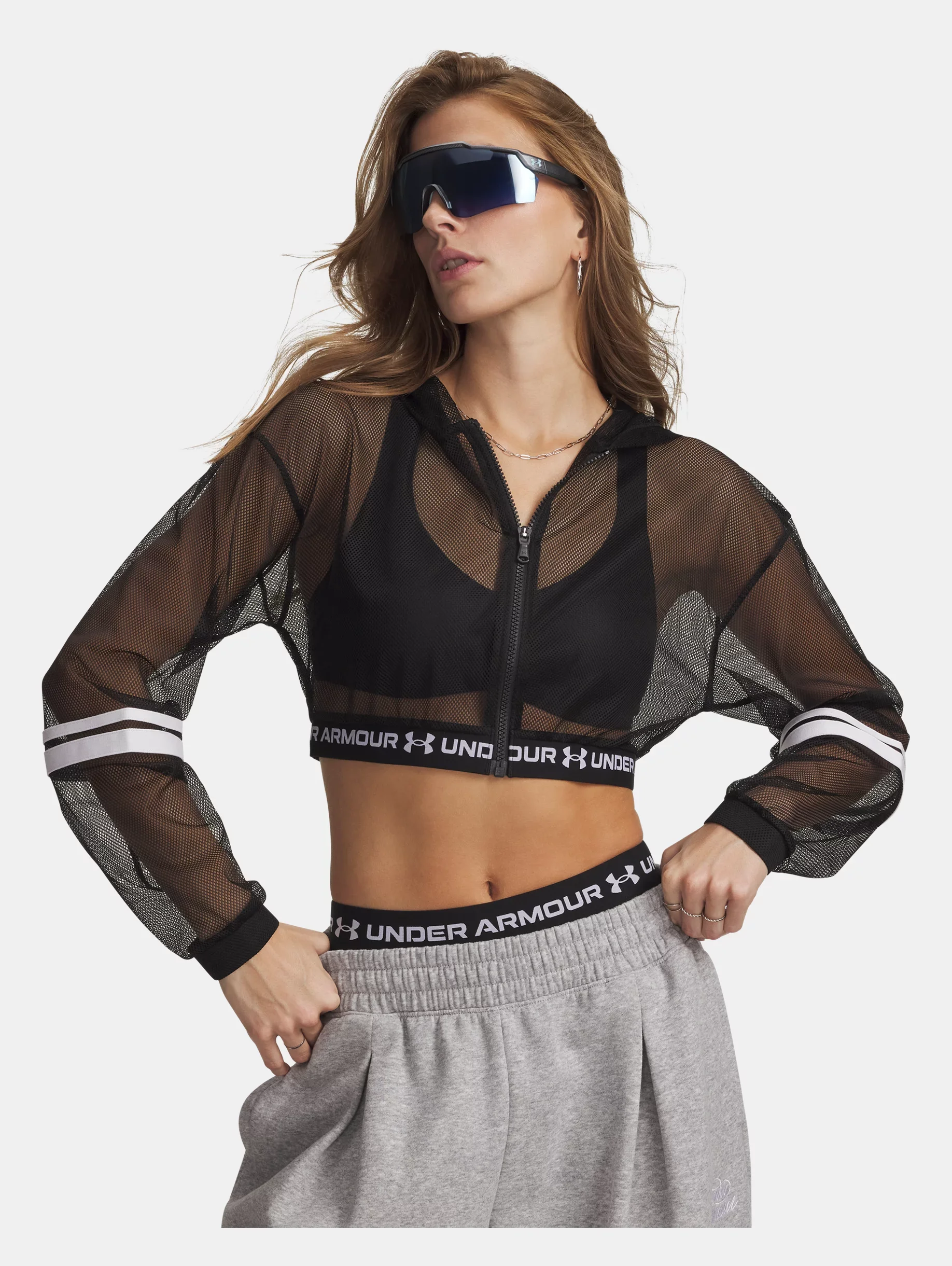 Product Details - Open-hole mesh fabric is ultra-light & extremely breathable - Center front zip makes for easy layering - Soft exposed elastic bottom band with wordmark detail - Tape trim detail on sleeves gives an elevated, sporty look Size & Fit - Fuller cut for complete comfort. Space & Care - Style #: 6012295 - 100% Polyester - Imported