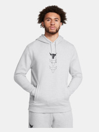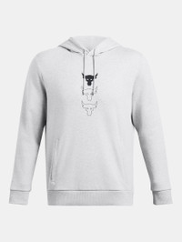 What's it do? Project Rock training gear was built to help you find boundaries, then push right through them. Everything in this collection was personally approved by Dwayne Johnson, the hardest worker in the room. ANY room. Product DNA - Ultra-soft cotton-blend fleece with brushed inside for extra warmth - Front kangaroo pocket - Ribbed cuffs & bottom hem - Main body fabric engineered to reduce fiber shedding leveraging Under Armour's Fiber Shed Test Method - Loose: Fuller cut for complete comfort. - Style #: 1386874 - 56% Cotton/44% Polyester - Imported