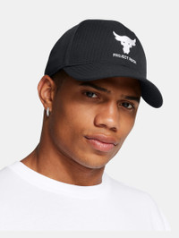 What's it do? Project Rock training gear was built to help you find boundaries, then push right through them. Everything in this collection was personally approved by Dwayne Johnson, the hardest worker in the room. ANY room. Product DNA - Trucker mesh side & back panels deliver added ventilation - UA Siro sweatband & front lining for greater stretch & recovery, an ultra-soft feel & more breathability - Adjustable snapback closure - One Size Fits Most - Style #: 1369815 - Embroidered front logo - 100% Polyester - Imported