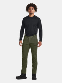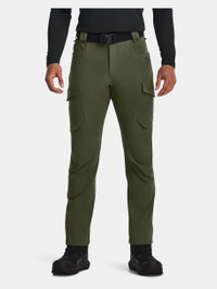 What's it do? These pants give you all the stretchy, lightweight athletic performance you expect from UA, plus all the durability you need for the job. Product DNA - UA Storm technology repels water without sacrificing breathability - Durable woven fabric with soft brushed interior for extra warmth - Stretch-engineered waistband with belt loops & working fly for superior mobility & comfort - Seam design at the knees gives you full range of motion - Open hand & back pockets & secure, flap-closure cargo pockets - Open hand pockets & secure, zip back pockets - Secure, hook & loop closure cargo pockets & additional utility pockets - Badge clip on front belt loops - Loose: Fuller cut for complete comfort. - Style #: 1379199 - Uses a fluorine-free water repellent treatment - Pockets: Yes - 91% Polyester/9% Elastane - Imported