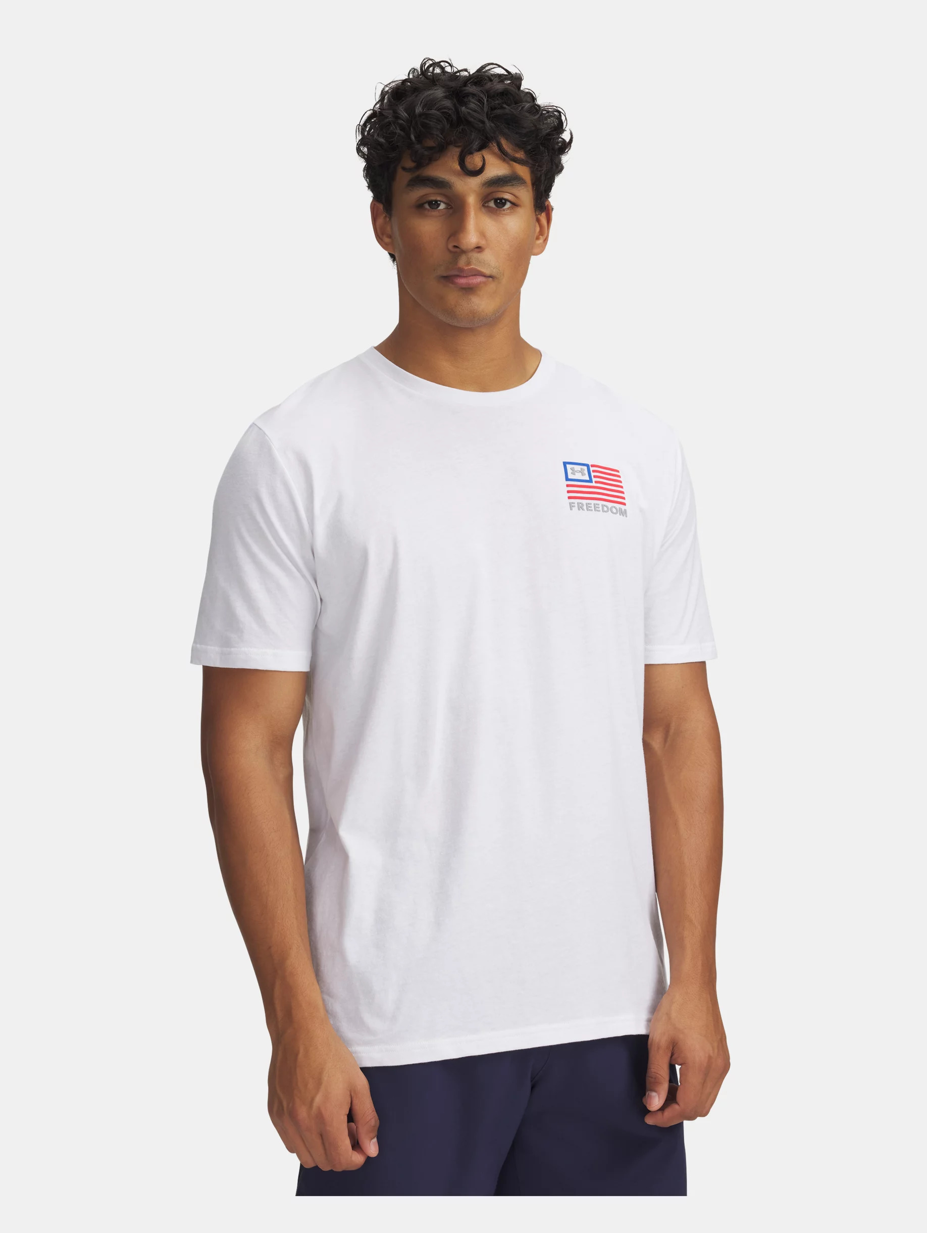 What's it do? UA Freedom's goal is to support and inspire the brave men and women dedicated to protecting us, every day. This T is soft and comfortable with an logo graphic on the front chest. Product DNA - Super-soft, cotton-blend fabric provides all-day comfort - Ribbed collar - Loose: Fuller cut for complete comfort. - Style #: 6001862 - 60% Cotton/40% Polyester - Imported