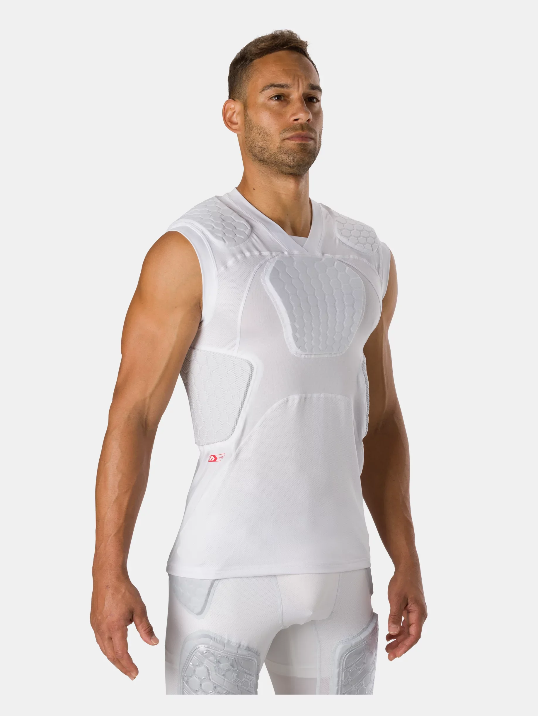 What's it do? The UA Gameday Armour Pro 6-Pad Top features patented McDavid® HEX® technology—the leading protective padding in the game—for protection at the ribs, shoulders, spine, and sternum. Product DNA - McDavid® HEX® padding is light & anatomically contoured to move with your body for comfort & protection - Padding is welded for sew-free, distraction-free comfort - HeatGear® fabric is ultra-soft & smooth for extreme comfort with very little weight - Material wicks sweat & dries really fast - 4-way stretch material moves better in every direction - Strategic stretch-mesh panels for added ventilation where you need it - HEX sternum pad positioned to protect against impact of minor injuries to the sternum & chest area - Compression: Ultra-tight, second-skin fit. - Style #: 1390390 - 92% Polyester/8% Elastane - Imported