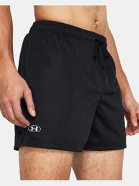 What's it do? These mesh shorts are breathable and light to help you stay cool and dry through even the toughest workout. Product DNA - All-over mesh fabric is soft & extremely breathable - Lined with smooth UA Tech™ fabric for added coverage & comfort - Material wicks sweat & dries really fast - Encased elastic waistband with external drawcord - Open hand pockets - Loose: Fuller cut for complete comfort. - Style #: 1383355 - Inseam: 5" - Pockets: Yes - 100% Polyester - Imported