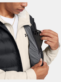 What's it do? This is our go-to down vest for Winter. It's crazy-warm, light, and still lets you move like an athlete. Product DNA - UA Storm technology repels water without sacrificing breathability - 600-fill Allied duck down insulation provides extreme warmth & is ethically sourced & traceable via tag - ColdGear® Infrared lining uses a soft, thermo-conductive coating to absorb & retain your body heat - Secure, zip hand pockets with soft tricot lining to keep your hands warm & internal chest pocket - Adjustable bottom hem for a secure fit - Loose: Fuller cut for complete comfort. - Style #: 1385838 - 100% Nylon - Imported
