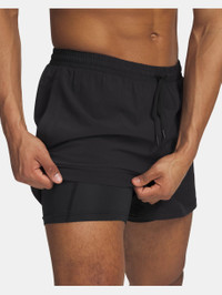 What's it do? UA Meridian staples are not only ultra soft, they're also light, quick-drying, and designed to fit perfectly. These shorts are so comfortable you'll want to wear them everywhere. Product DNA - Ultra-light, comfortable stretch-woven fabric for totally unrestricted movement - Built-in, soft knit compression shorts for added coverage & support - Material wicks sweat & dries really fast - 4-way stretch material moves better in every direction - Encased elastic waistband with external drawcord - Open hand pockets - Side-vent hem - Loose: Fuller cut for complete comfort. - Style #: 6005469 - Inseam (outer): 4.25" - Inseam (liner): 4.75" - Pockets: Yes - Outer Shorts: 88% Polyester/12% Elastane - Liner Shorts: 92% Polyester/8% Elastane - Imported