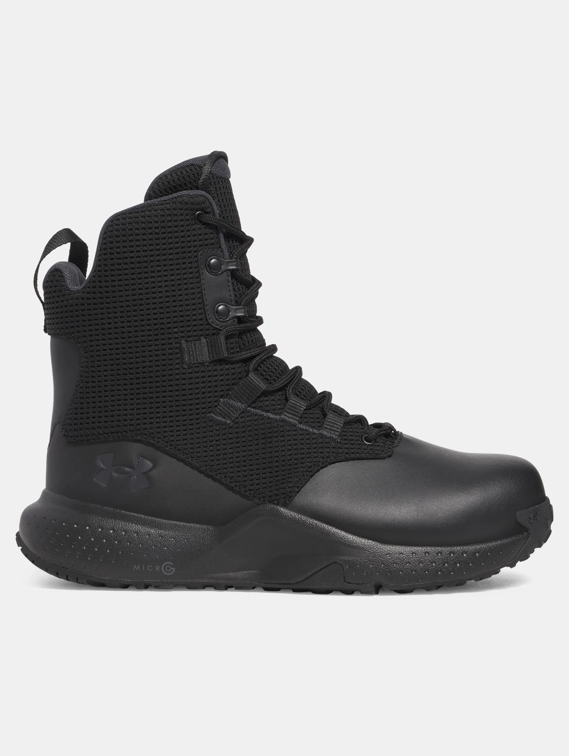 What's it do? We upgraded the outsole of our popular UA Stellar to be slip-resistant so the elements won't get in the way. It's also more breathable, has a protective composite toe, and keeps your feet feeling fresher during the longest shifts. Product DNA - Light & breathable textile upper with full-grain, polishable leather forefoot for durable protection - Internal composite protective toe construction for added comfort & safety - Front & back pull loops for easier on/off - Die-cut, full-length EVA footbed provides ideal underfoot comfort - Full-length Micro G® foam midsole for the ultimate in long lasting, responsive cushioning - Internal composite protective toe & reinforced TPU shank for added comfort & safety - Slip-resistant, high-traction rubber lug outsole for enhanced grip on a variety of surfaces - Upper contains at least 20% recycled content - Regular - Style #: 3028318 - Height: 8" - Weight: 25.9 oz. - Lace type: Standard tie - Meets ASTM F2413-18 1/75 C/75 EH safety standard - ASTM F3445-21 Slip Resistant rated - Imported
