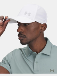 What's it do? UA Storm technology is light, nearly weightless, and just shrugs off the rain. Add it to our best hats and there's never an excuse to stay inside. Product DNA - UA Storm technology repels water without sacrificing breathability - Durable stretch-woven material with UPF 50+ protects your skin from the sun's harmful rays - UA Siro sweatband gives greater stretch & recovery, an ultra-soft feel & more breathable performance - Side fabric loop for holding a tee - Stretch fit design for customized comfort - Uses a fluorine-free water repellent treatment - Odor control technology minimizes odor - Stretch Fit - Style #: 1389889 - 87% Polyester/13% Elastane - Imported