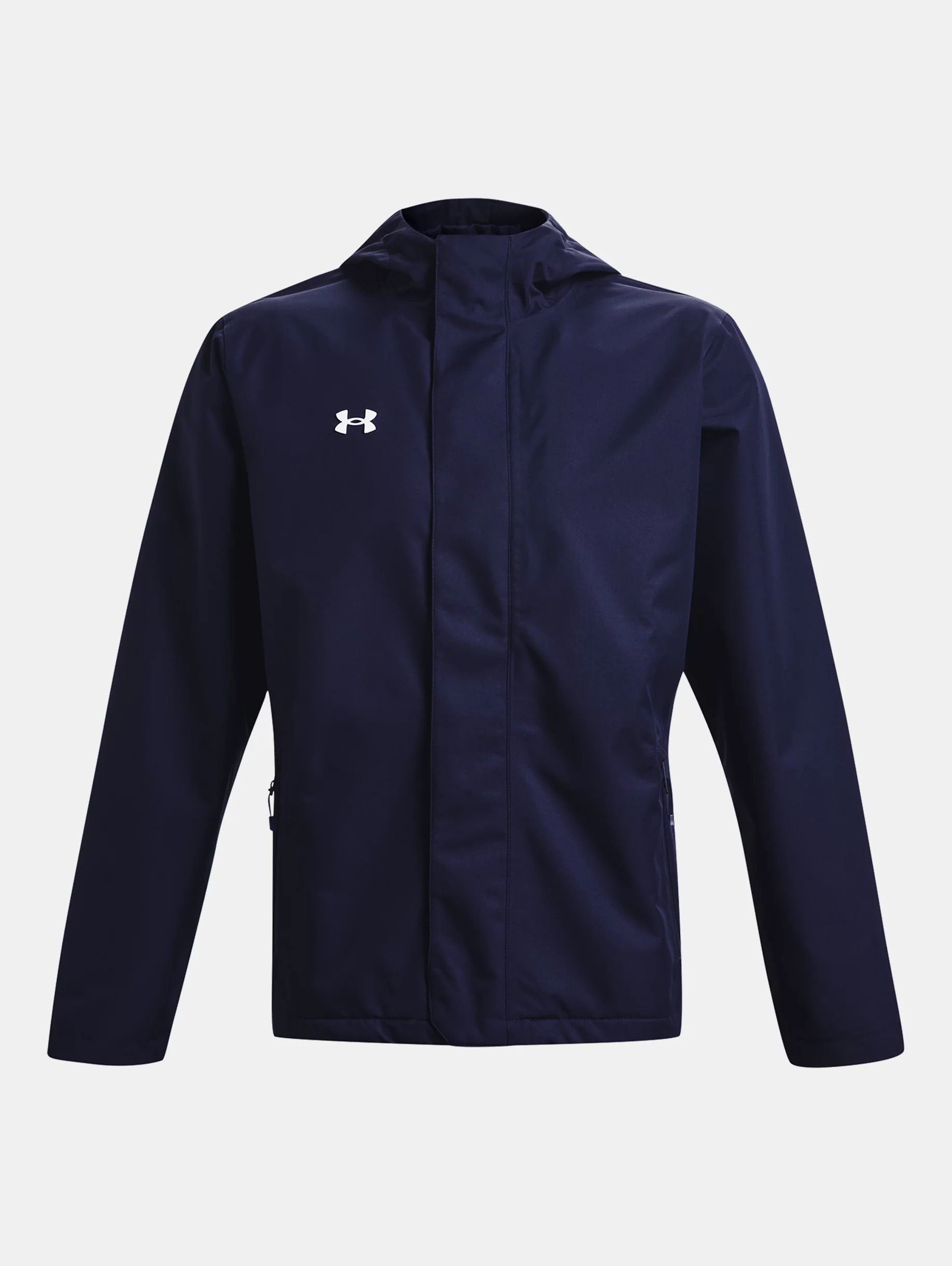 What's it do? Finding the perfect rain shell is tough—there are a million out there. But none quite like this, built for athletes first. It's crazy-light, 100% waterproof, and you won't overheat. Product DNA - UA Storm technology repels water without sacrificing breathability - 2-layer outer fabric with fully taped seams is 100% waterproof & windproof - Interior woven lining for added comfort & warmth - Front hood adjust for optimal fit & protection - Secure, zip hand pockets & left chest pocket big enough for a playbook or tablet - ColdGear® knit cuffs with built-in thumbholes help keep the cold out - Bungee adjust bottom hem for a secure fit - Uses a fluorine-free water repellent treatment - Loose: Fuller cut for complete comfort. - Style #: 1369254 - 10k/10k rating - Body: 100% Polyester - Lining: 100% Nylon - Cuffs: 88% Polyester/12% Elastane - Imported