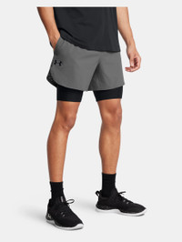 What's it do? The UA Vanish Elite Shorts were built specifically for total mobility, with ultra-stretchy materials and a hem designed for how your legs move. That means you have full range of motion, no matter how dynamic your workout is. Product DNA - Lightweight stretch-woven fabric provides superior mobility & durability - Built-in knit compression shorts for added coverage & support with mesh panels for strategic breathability - Exposed elastic waistband with mesh ventilation & internal drawcord - Laser perforations for increased breathability - Extended gusset provides enhanced mobility - Open hand pockets with secure, zip Strength Pocket™ on right side - Shaped, side-vent hem for better range of motion - Uses a fluorine-free water repellent treatment - Fitted: Streamlined fit that’s not too tight or too loose. - Style #: 1378604 - Inseam (outer shorts): 5" - Inseam (liner shorts): 8.75" - Pockets: Yes - Outer shorts: 87% Polyester/13% Elastane - Liner shorts: 84% Polyester/16% Elastane - Imported