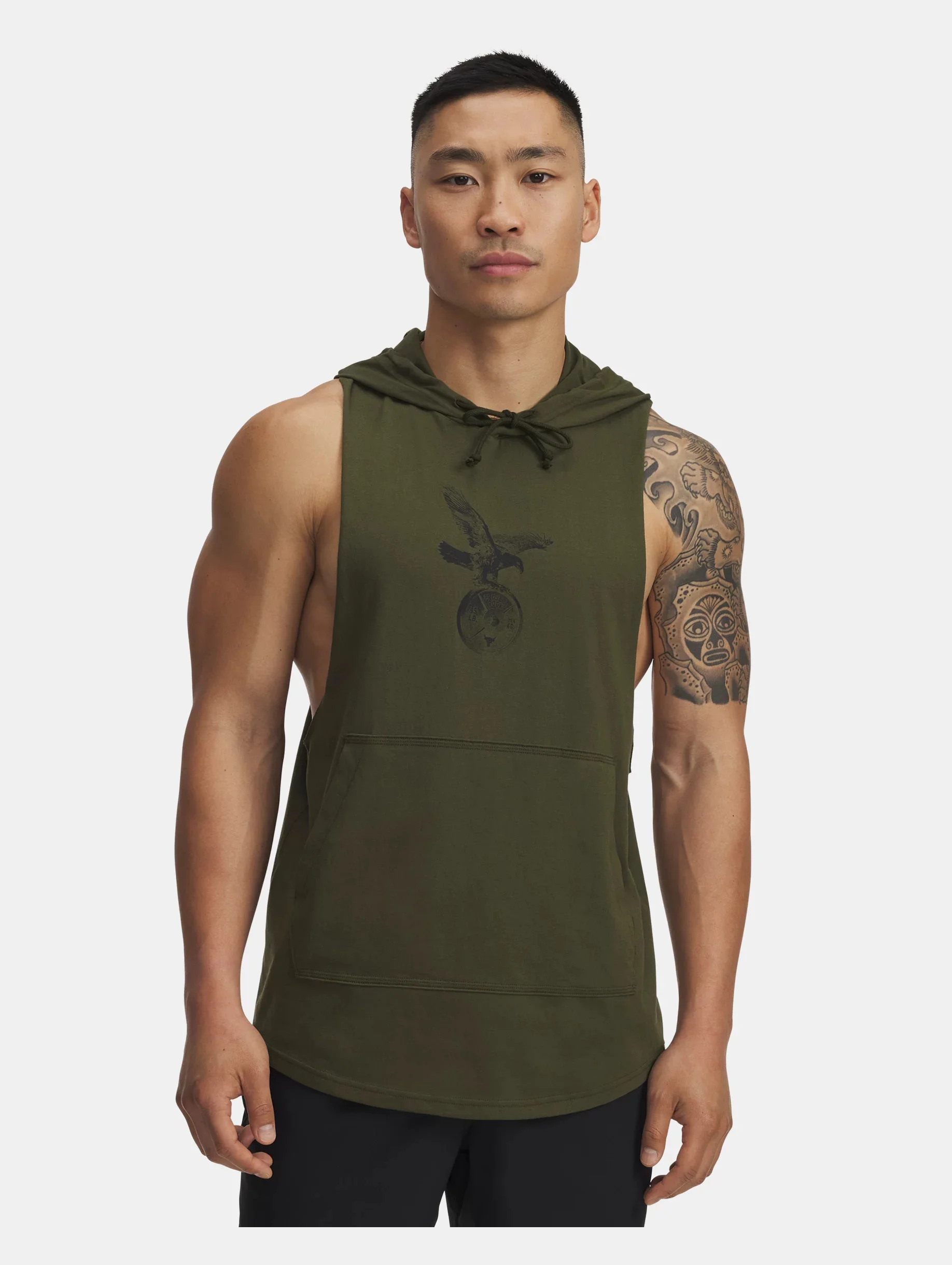 Project Rock training gear was built to help you find boundaries, then push right through them.This sleeveless hoodie was personally approved by Dwayne Johnson, the hardest worker in the room. ANY room. Product Details - Super-soft, cotton-blend fabric provides all-day comfort - Front kangaroo pocket - Shaped hem for enhanced coverage - Main body fabric contains at least 40% recycled polyester, excluding trims & embellishments Size & Fit - Fuller cut for complete comfort. Space & Care - Style #: 6005054 - 60% Cotton/40% Polyester - Imported