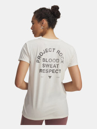 Project Rock training gear was built for the hardest workers in the room. This graphic T is comfortable, dries quick, and makes a statement. Product Details - Super-soft, cotton-blend fabric provides all-day comfort - Ribbed collar - Main body fabric contains at least 40% recycled polyester, excluding trims & embellishments Size & Fit - Fuller cut for complete comfort. Space & Care - Style #: 6005075 - 60% Cotton/40% Polyester - Imported