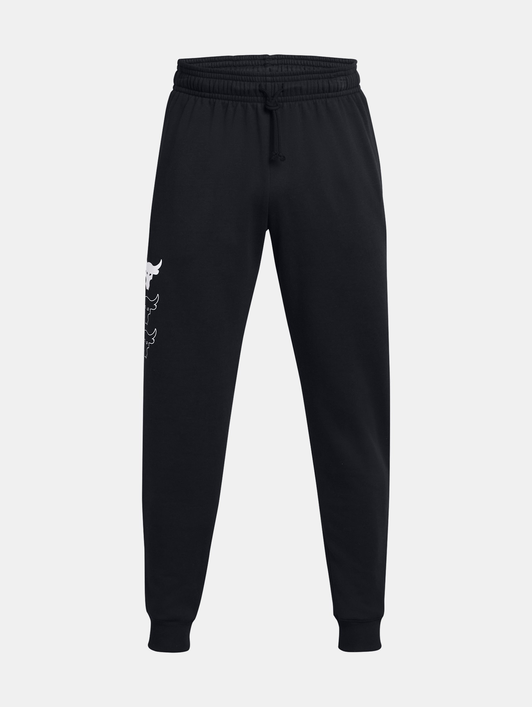 Project Rock training gear was built to help you find boundaries, then push right through them.Everything in this collection was personally approved by Dwayne Johnson, the hardest worker in the room. ANY room. Product Details - Ultra-soft cotton-blend fleece with brushed inside for extra warmth - Encased elastic waistband with external drawcord - Open hand pockets & secure, snap-closure back pocket - Main body fabric engineered to reduce fiber shedding leveraging Under Armour's Fiber Shed Test Method Size & Fit - Fuller cut for complete comfort. Space & Care - Style #: 1386876 - Inseam: 31" - Pockets: Yes - 56% Cotton/44% Polyester - Imported - Tapered leg fit with ribbed cuffs - Machine wash cold with like colors - Do not bleach - Tumble dry low - Do not iron - Do not use softeners - Do not dry clean