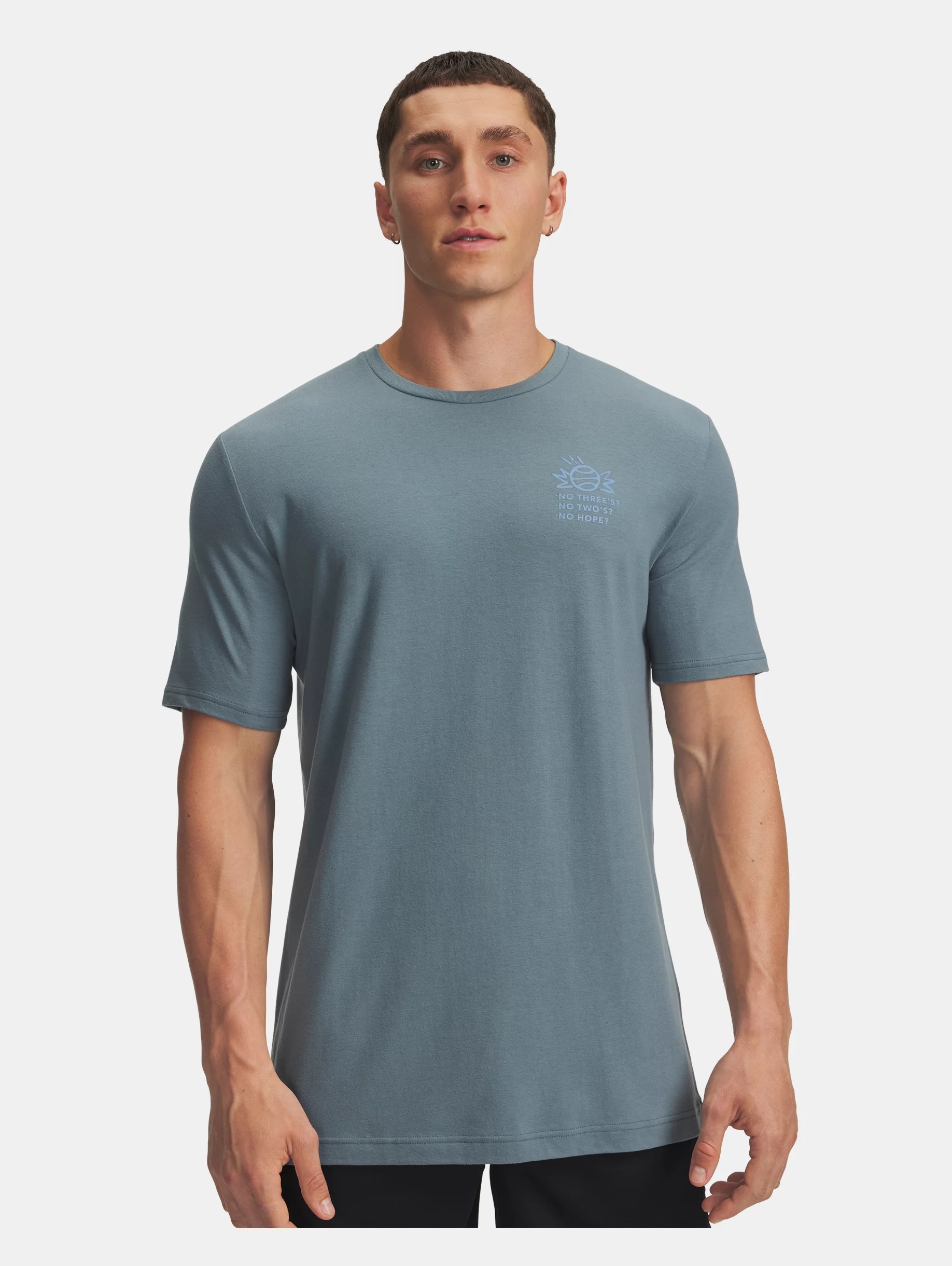 Everyone makes Ts...but Under Armour makes them better.The fabric on this basketball graphic T is light, soft, and quick-drying. Product Details - Super-soft, cotton-blend fabric provides all-day comfort - Ribbed collar Size & Fit - Fuller cut for complete comfort. Space & Care - Style #: 6003684 - 60% Cotton/40% Polyester - Imported