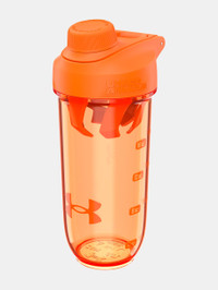 A shaker bottle that is easy to use and hold onto, and is shatter-, stain-, and odor-resistant. No leaks, no clumps, no microplastics—plus it's easy to clean. Product Details - Made with 50% certified recycled material, the equivalent of 5 single-use bottles - Removable agitator that delivers a near-quiet shake & doesn't generate microplastics - Lockable, leak-resistant lid also helps keep spout clean - Angled spout design makes it easier to sip when active & on the run - Twist cap with finger imprint & contoured design for a secure, more comfortable hold when you shake - Top cap easily rotates to stay out of the way when drinking & stowable finger loop makes for easy carry - Marked with ounces & milliliters for easy measuring - BPA & lead free Size & Fit - No Fit Type Space & Care - Style #: 1390508 - Capacity: 24 oz. - Dimensions: 9" H x 3.5" W x 4" D - Weight: 9.5 oz (0.6 lbs.) - Manufactured by USB, exclusive licensee of Under Armour® - Imported - Dishwasher safe (top rack only)