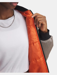 We reimagined the fundamentals of athletic gear—mesh, satin, shine—to bring you an elevated collection of standout off-court styles inspired by the premium feel of classic sportswear. Product Details - Lightweight, breathable knit fabric with lux shine finish for an elevated look & feel - Material wicks sweat & dries really fast - All-over 40g synthetic insulation for lightweight warmth with no excess bulk - Open hand pockets - Ribbed collar, cuffs & bottom hem Size & Fit - Fuller cut for complete comfort. Space & Care - Style #: 6000294 - Discreet, raised embroidered logo - 100% Polyester - Imported