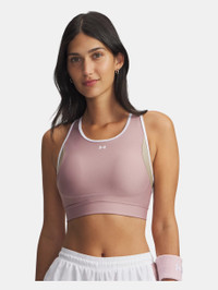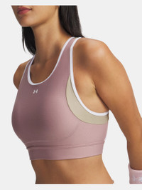 This is the go-to sports bra for athletes.It's supportive, wicks sweat, and is so stretchy and comfortable you'll forget it's even there. Plus, the open back design is super flattering. Product Details - Delivers strategic support, tailored for medium-support activities like cycling, weight training & boxing - Removable cups for enhanced shape & coverage - Crossover straps with open back design for ultimate breathability & easy on/off - Elastic band feels super-smooth & soft - Super-smooth, double-layer HeatGear® fabric delivers superior next-to-skin feel - Material wicks sweat & dries really fast & light - High-neck front for added coverage Size & Fit - Ultra-tight, second-skin fit. Space & Care - Style #: 6005838 - 87% Polyester/13% Elastane - Imported